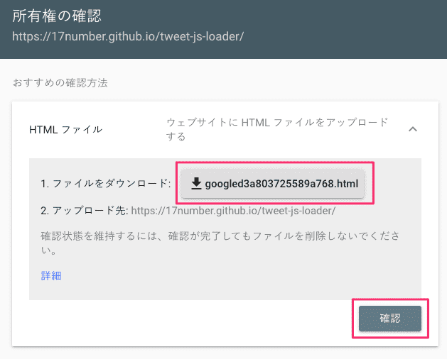 HTML ファイルにアクセスができるようになるので、確認を押すと次の画面が表示される