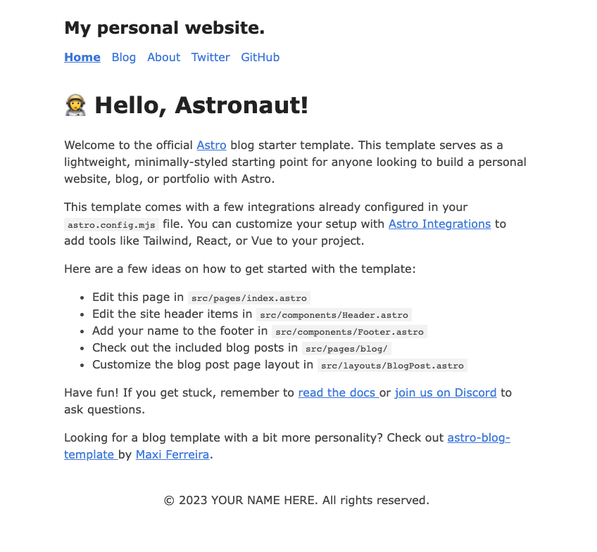 Next.js のテンプレートを使って作られたブログを Astro で作り直しました。